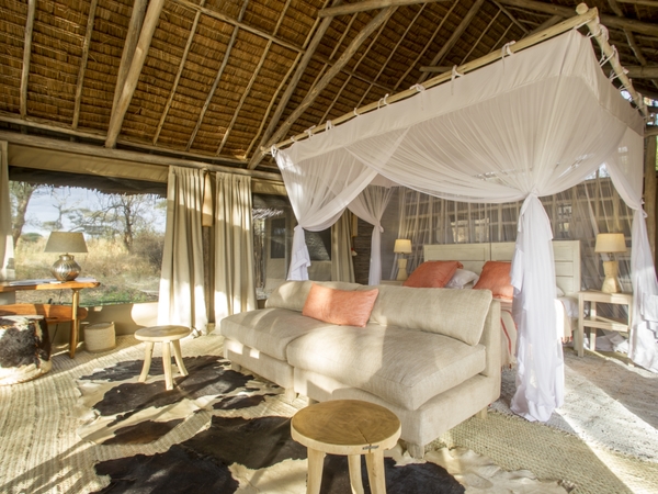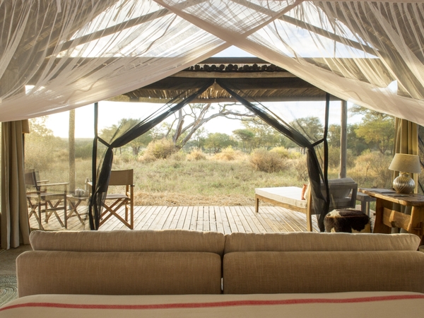 Kuro Tarangire is a small, stylishly simple camp situated in a quiet, secluded setting surrounded by fantastic walking territory and within easy reach of all the best wildlife areas. The camp consists of just six airy thatched tents, each with an en suite bathroom, private veranda and comfortable interior space. The beds are draped in mosquito netting, and your private deck has safari chairs, perfect for watching the sunrise with a cup of tea or coffee before setting off on your morning game drive. The central lounge and dining areas are cozy and open, the perfect place for gathering together or meeting like-minded travelers. Wildlife is free to move past the camp, so you may even be able to experience an armchair safari from the lounge.