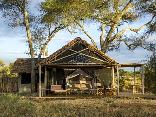 Kuro Tarangire Camp is situated in a location that was home to one of the very first camps in the park and one of the most sought after spots. The camps is far south, seeing few day tourists, situated in a grove of acacia and kigelia trees on the Tarangire River, along which wildlife moves, and ideal for guided walks. With just six tented, thatched rooms, Kuro is a little slice of seclusion in the wild.
